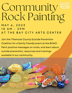 The Introduction to Problem Gambling Prevention presentation will be presented by the Tillamook Family Counseling Center. This presentation will be presented virtually using the Zoom platform on May 12th, from 3:30-4:30PM. Participants who attend this training will learn the basics of prevention, prevention tips, and helpful prevention resources. This training was designed to be beneficial for parents, caretakers, or other caring adults. This training is being offered at no charge to 20 participants that live or work in Tillamook County. To learn more email Janeanek@tfcc.org. - Tillamook County Suicide Prevention Rock Painting Event: